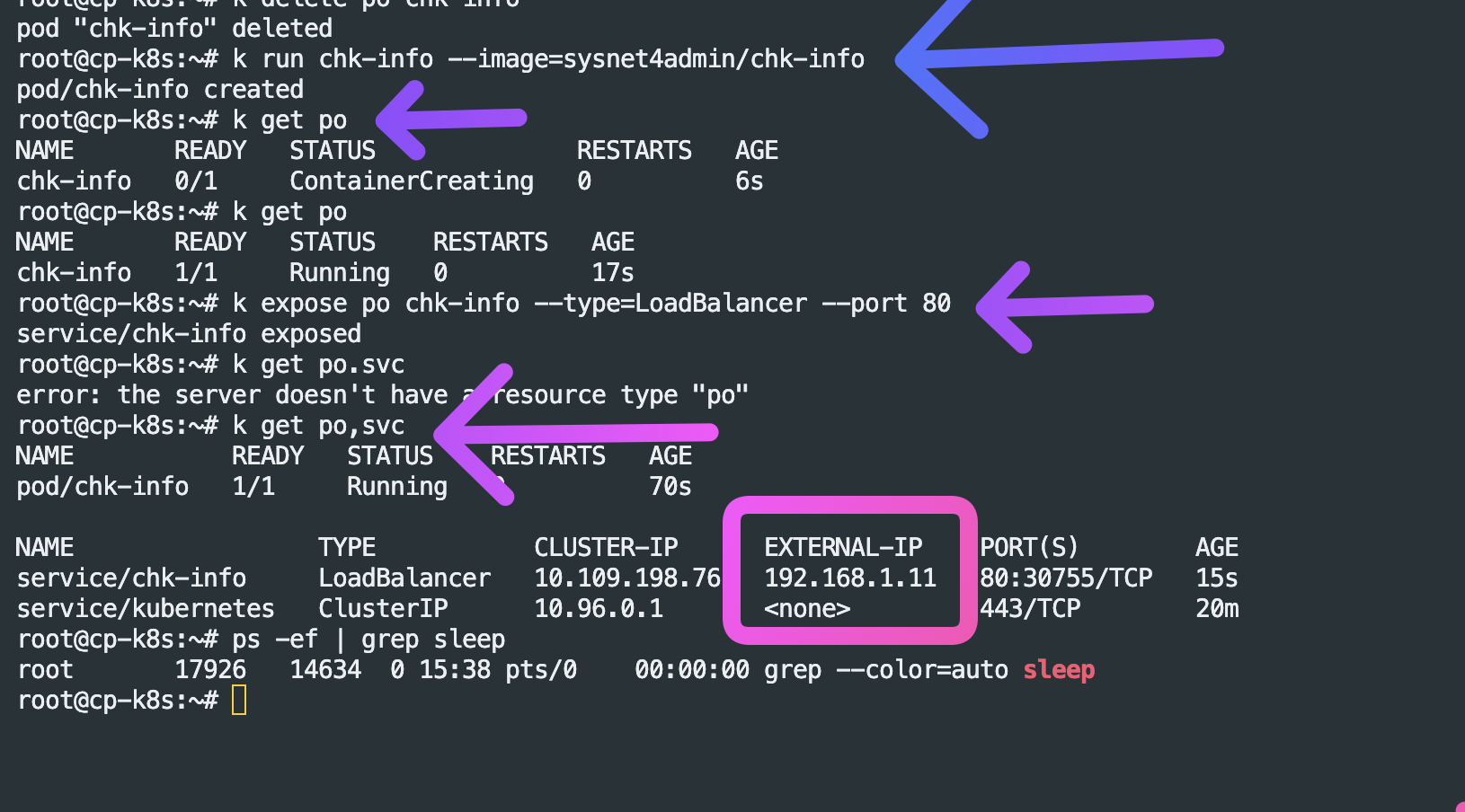 앞에 k 붙으면 그냥 쿠버네티스 명령어 나가는듯 아래와같이 뭔가 컨테이너를 실행시키면 엔진엑스 실행됨